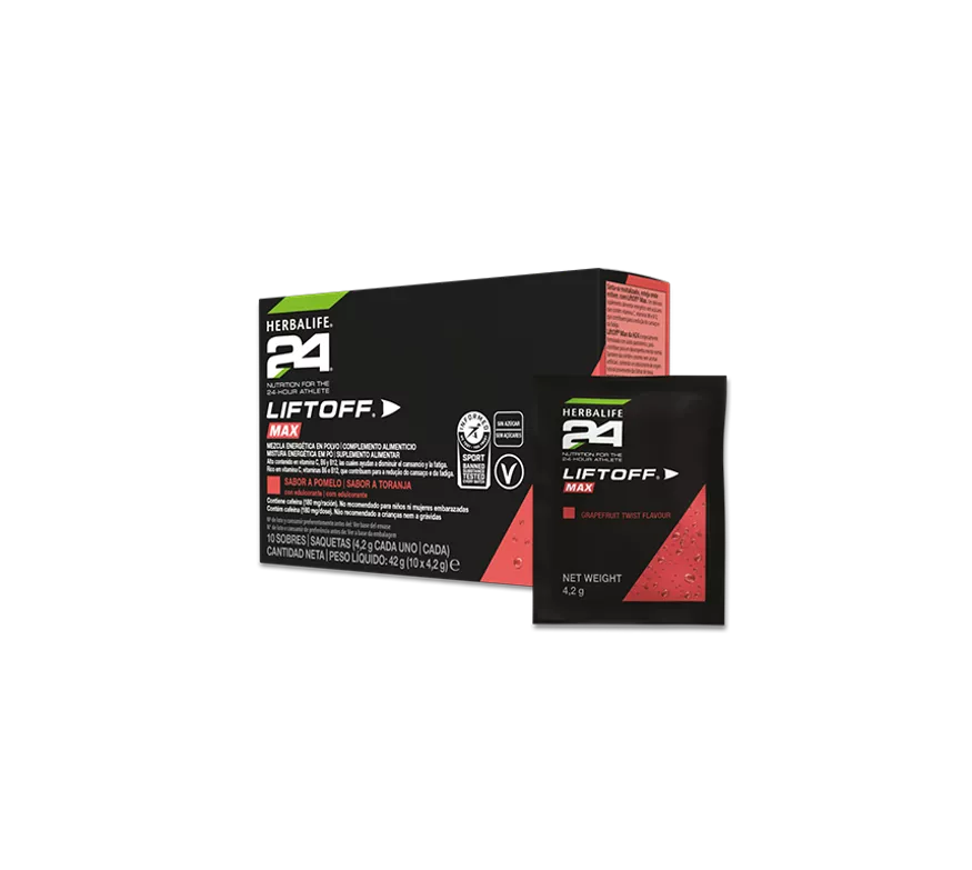 Este producto destaca por su capacidad para mejorar la concentración y reducir la sensación de fatiga de manera inmediata durante el entrenamiento. Al elegir el Lift off Max H24 Herbalife Sabor pomelo, aportas a tu organismo una mezcla exclusiva de cafeína de alta calidad junto con una selección de micronutrientes. Asimismo, su fórmula está enriquecida con vitaminas B6, B12 y Vitamina C que contribuyen al metabolismo energético normal. Además, es una opción apta para deportistas de élite.